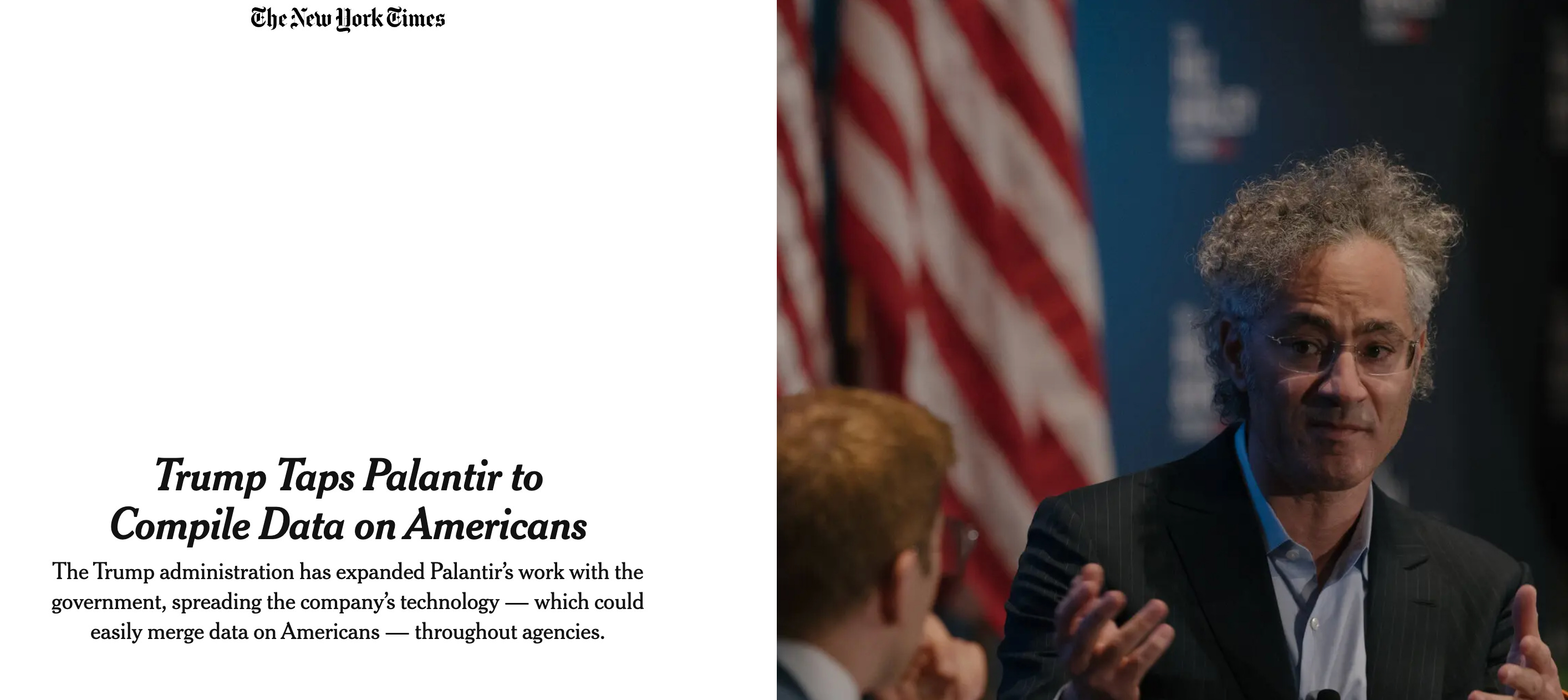 But there is also the matter of the huge data grab it represents. Recently, it was announced a huge deal between the US government and Palantir. New York Times:
